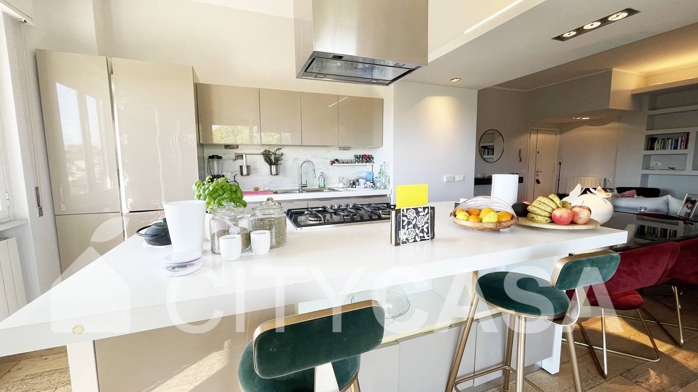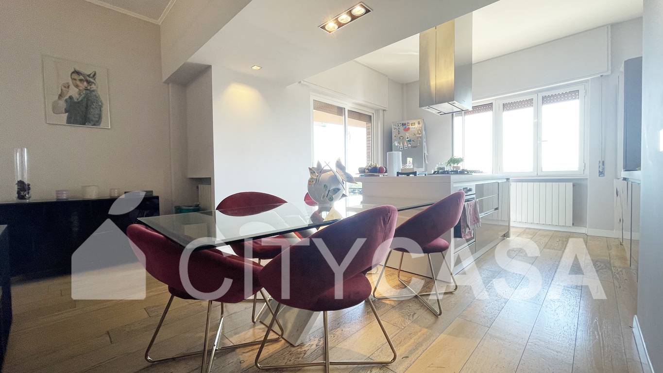 Proponiamo la locazione di un Appartamento Panoramico sitato al Primo Piano con affaccio da 5° PIANO e completamente Ristrutturato, di circa MQ. 104 + MQ. 40 ca di superficie Esterna in buona parte Terrazzata. L'Immobile presenta 3 Esposizioni e pertanto la Luminosità è sempre garantita in qualsiasi mese dell'anno.