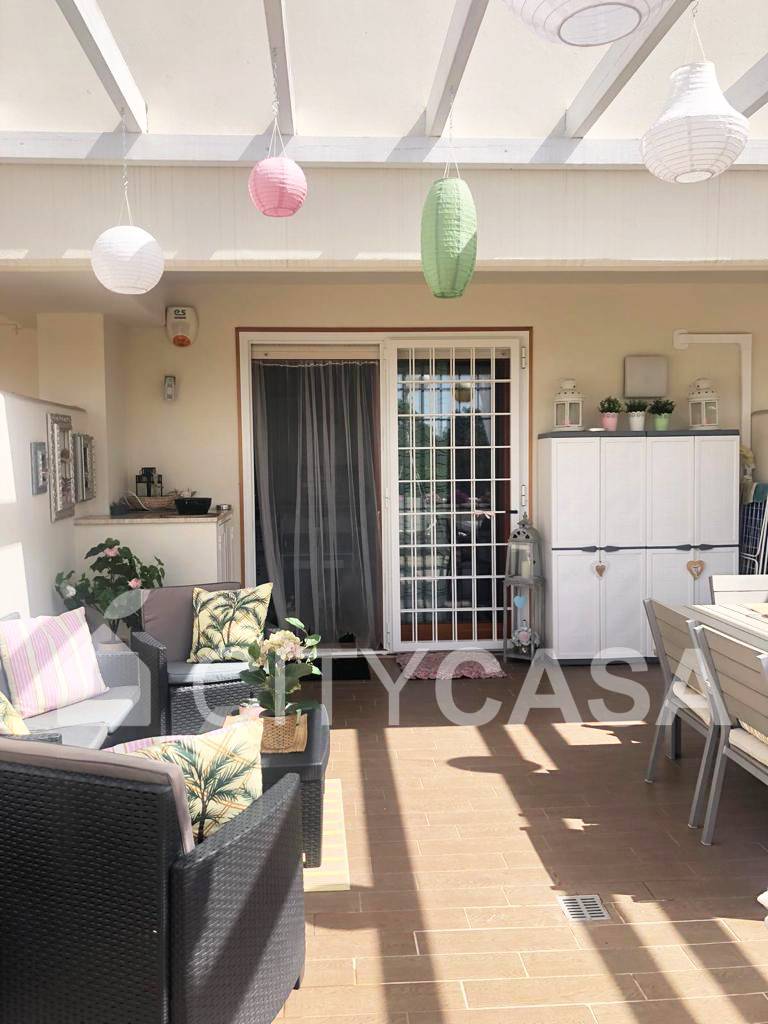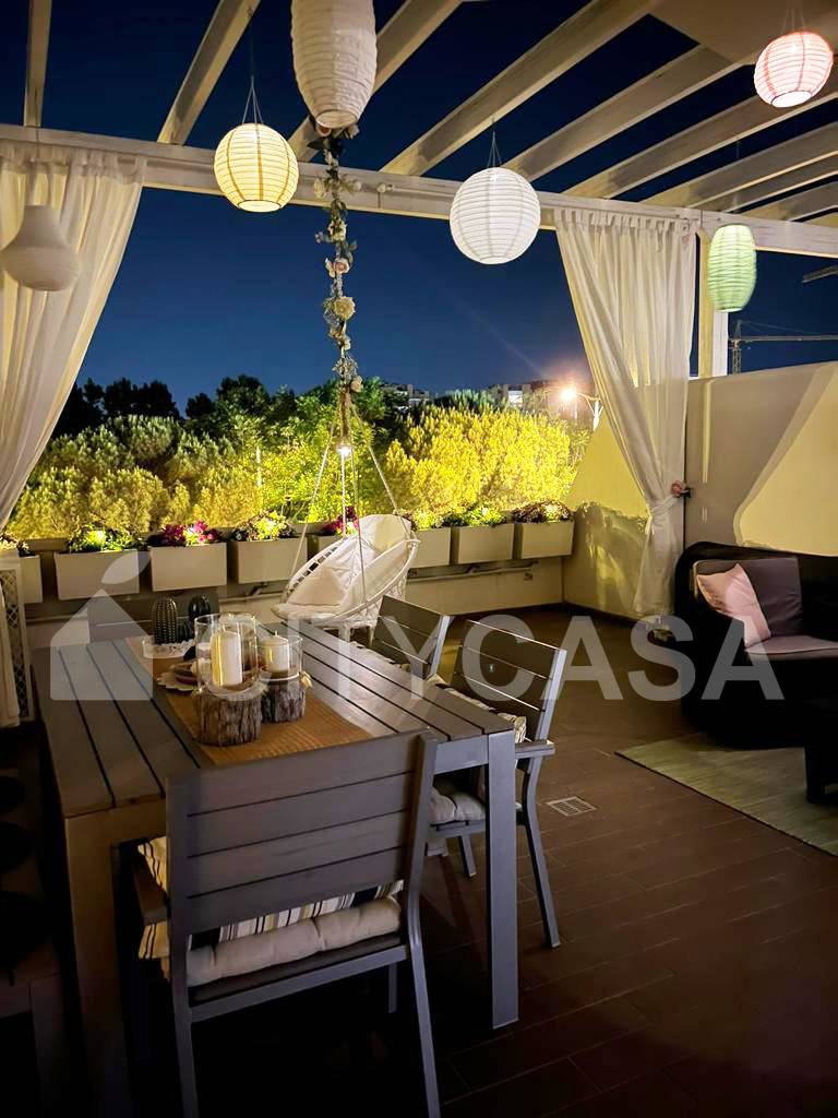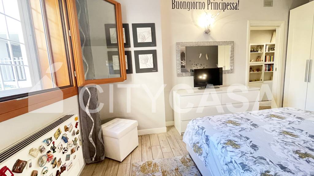 DOTAZIONI: Portoncino Blindato, Avvolgibili Elettriche, Zanzariere, Grate in Acciaio Apribili,Tende Solari, Domotica con Touch Screen per attivare gli Scenari predisposti e mettere in funzione gli Elettrodomestici. Il Pavimento dell'intero Appartamento è in Gres Porcellanato effetto Legno, gli Infissi sono in Legno con Doppi Vetri. Il Riscaldamento è Termoautonomo alimentato da Caldaia a Gas (installata nel 2022). L'Appartamento è dotato di Impianto di Climatizzazione e Impianto di Allarme Volumetrico Interno e Perimetrale all' Esterno, Sistema di Telecamere interne ed esterne all'Immobile, oltre al Sistema di Irrigazione Automatica.