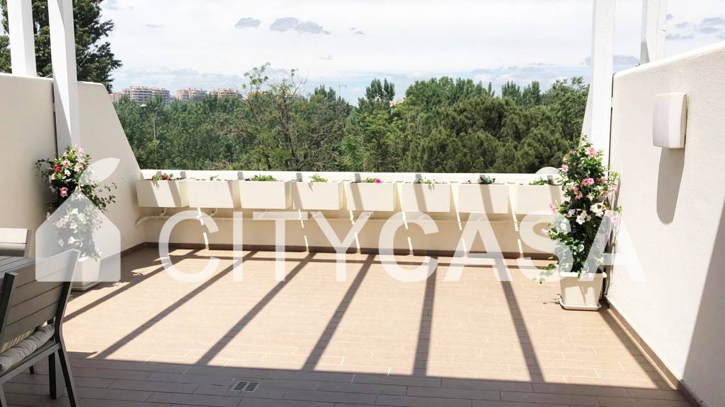 In Elegante Comprensorio costituito da Moderni Appartamenti Terrazzati e ubicati in un Edificio di soli 2 Piani, proponiamo la VENDITA un Ampio Bilocale FINEMENTE RISTRUTTURATO e PANORAMICO di ca. Mq. 80 che si affaccia direttamente sul Parco Talenti.