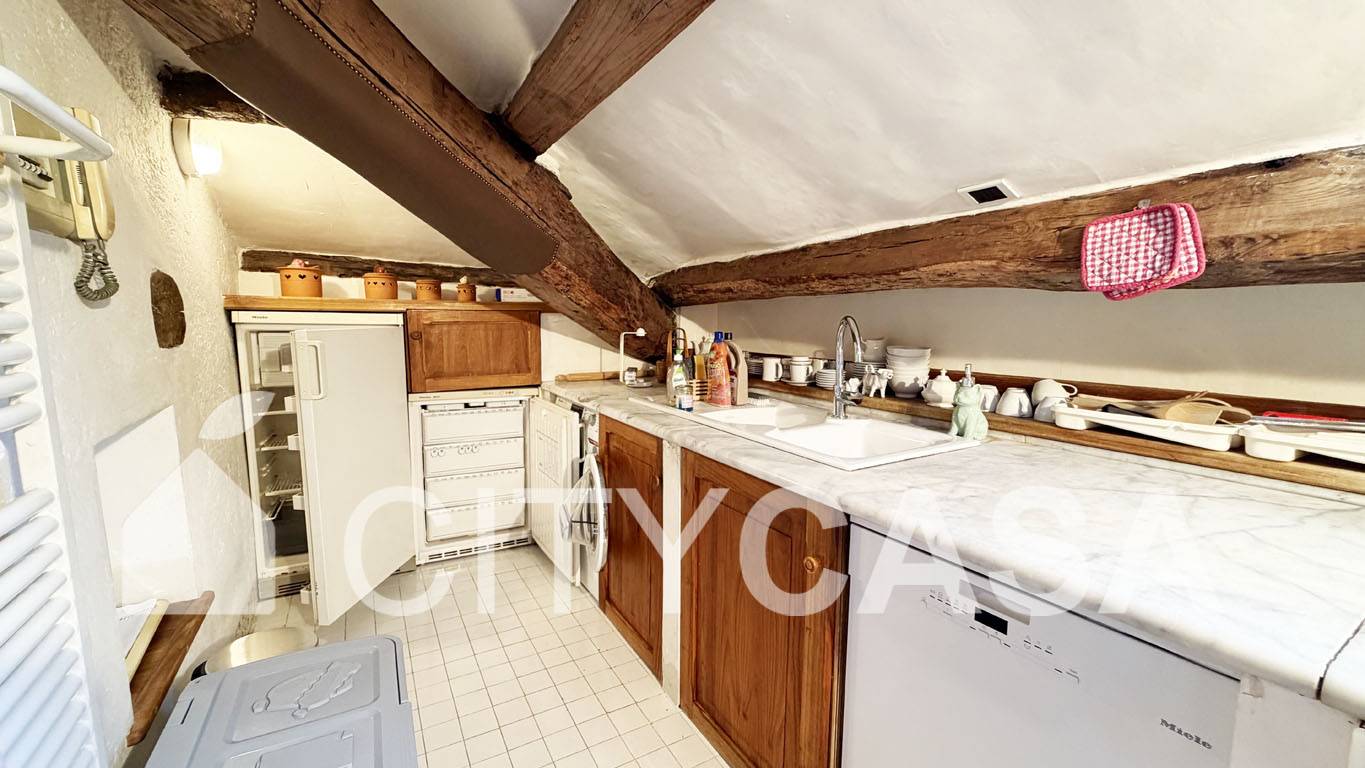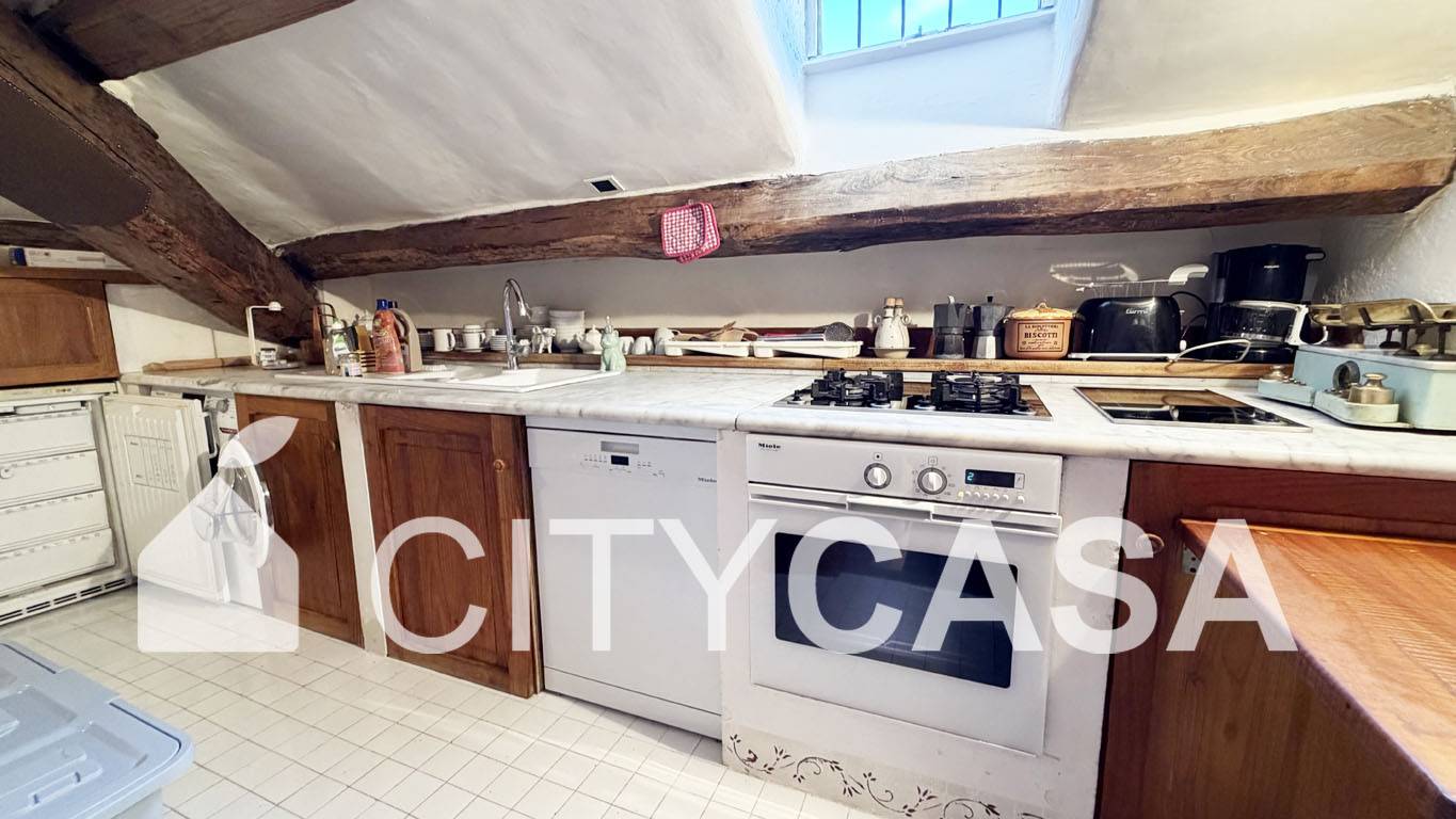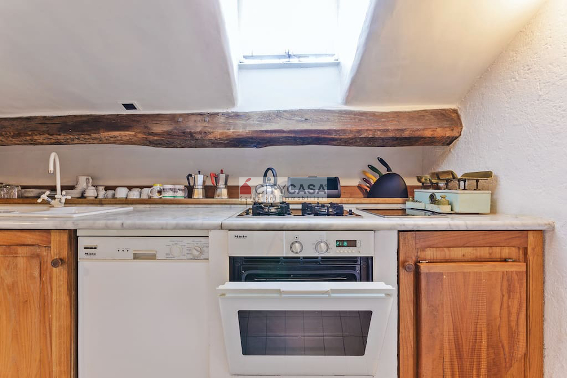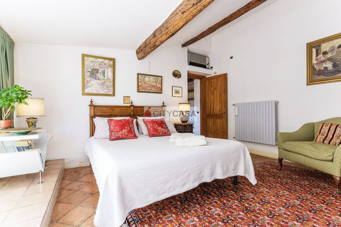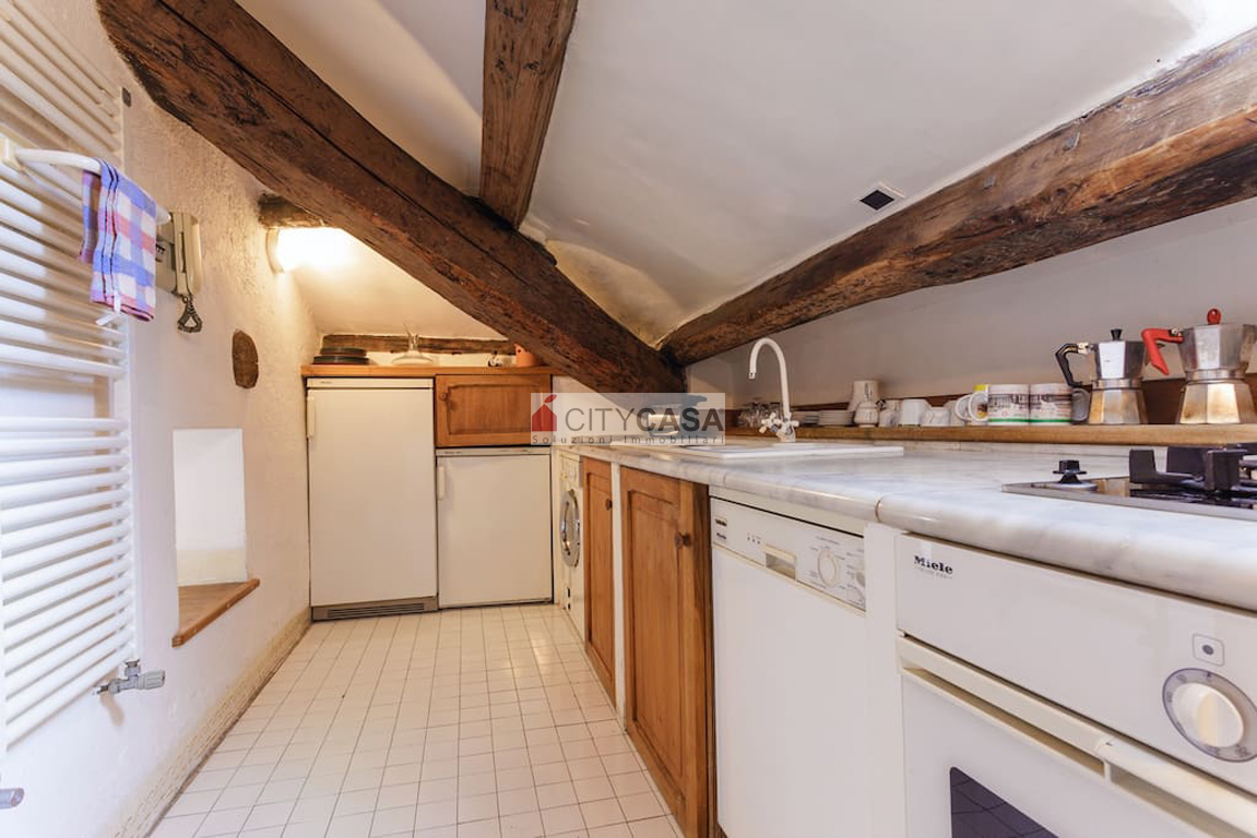 L'immobile è caratterizzato da un Bellissimo Pavimento in Cotto Fiorentino che ben si abbina alla Scala in Peperino grigio, Pietra Naturale tipica del posto, che conduce alla Cucina completamente attrezzata.