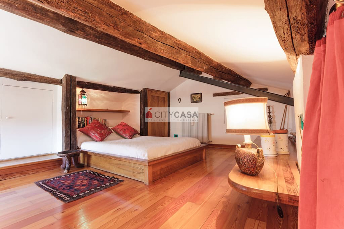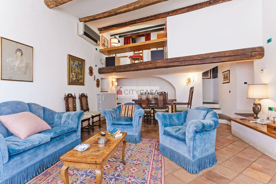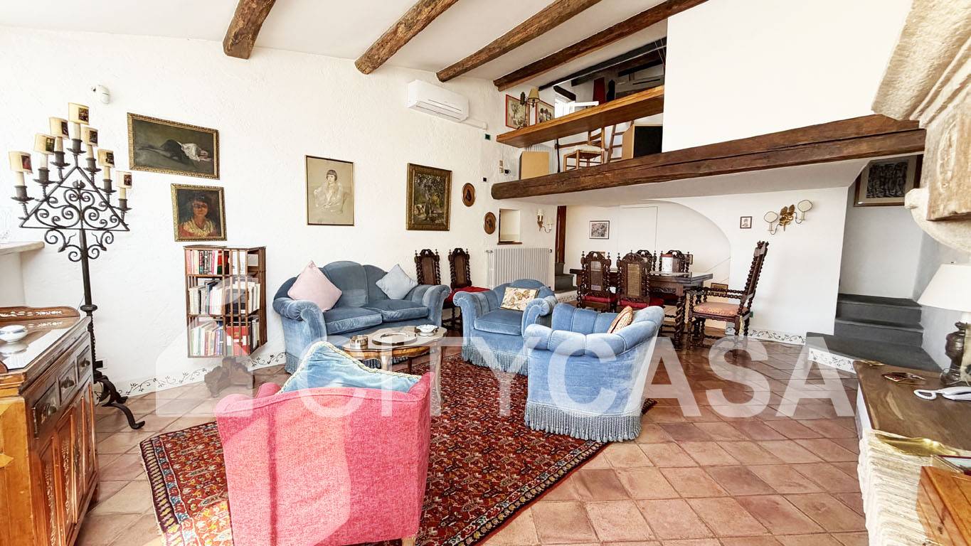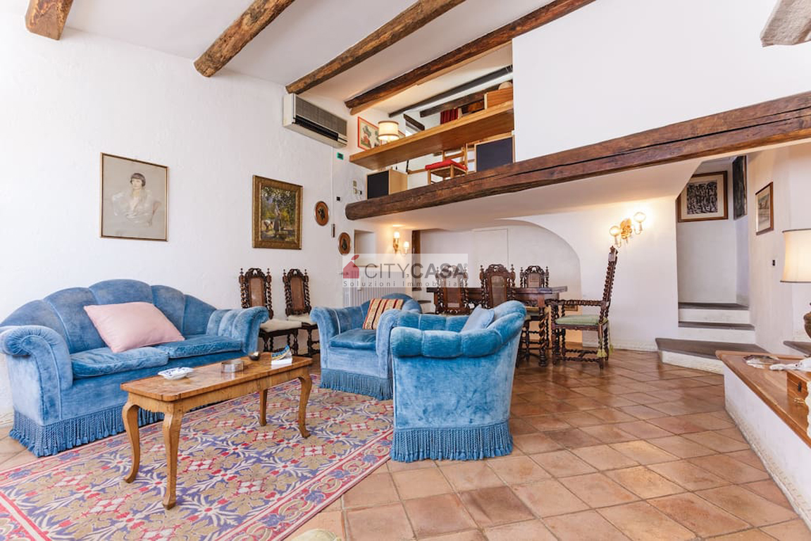 Aprendo la porta d`Ingresso, ci si trova in un ambiente accogliente, caratterizzato da una Scala in Peperino che dal quarto piano conduce al Soggiorno con Camino e Travi a vista, dando il Calore ed il Colore che contraddistinguono e rendono Unica questa Abitazione.