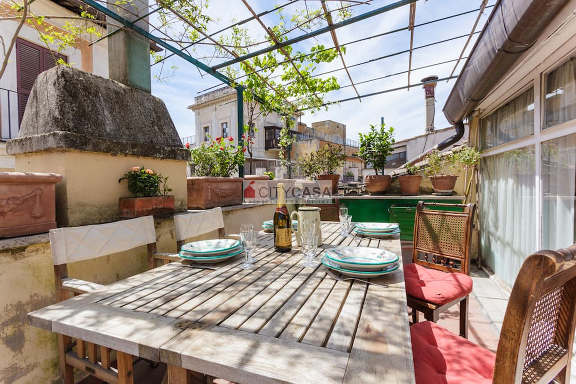 ATTICO Signorile e/o di Rappresentanza, Luminoso e Silenziosissimo di Mq.130 nel Rione Parione, ubicato in zona pedonale in pieno Centro Storico della Capitale e più precisamente a ridosso di Via dei Giubbonari, a 100 mt. da Campo dei Fiori. l'Immobile è situato all'interno del Palazzo "Goggi Ghetti" del Sec. XVII, incastonato in un' Antica ed Originalissima Piazzetta che per le peculiarità architettoniche che la caratterizzano è impossibile passare inosservata, in cui è presente anche la Chiesa di Santa Barbara dei Librari.